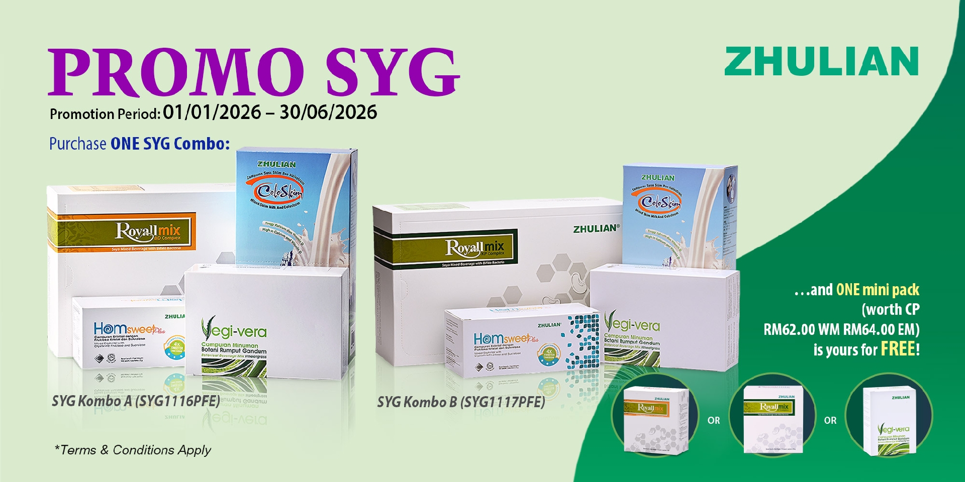 SYG Combo A (SYG1116PFE) ColoSkim, Royallmix BD (30 sachets), Vegi-Vera (30 sachets) & HomsweetPlus | OR | SYG Combo B (SYG1117PFE) ColoSkim, Royallmix KP (30 sachets), Vegi-Vera (30 sachets) & HomsweetPlus |