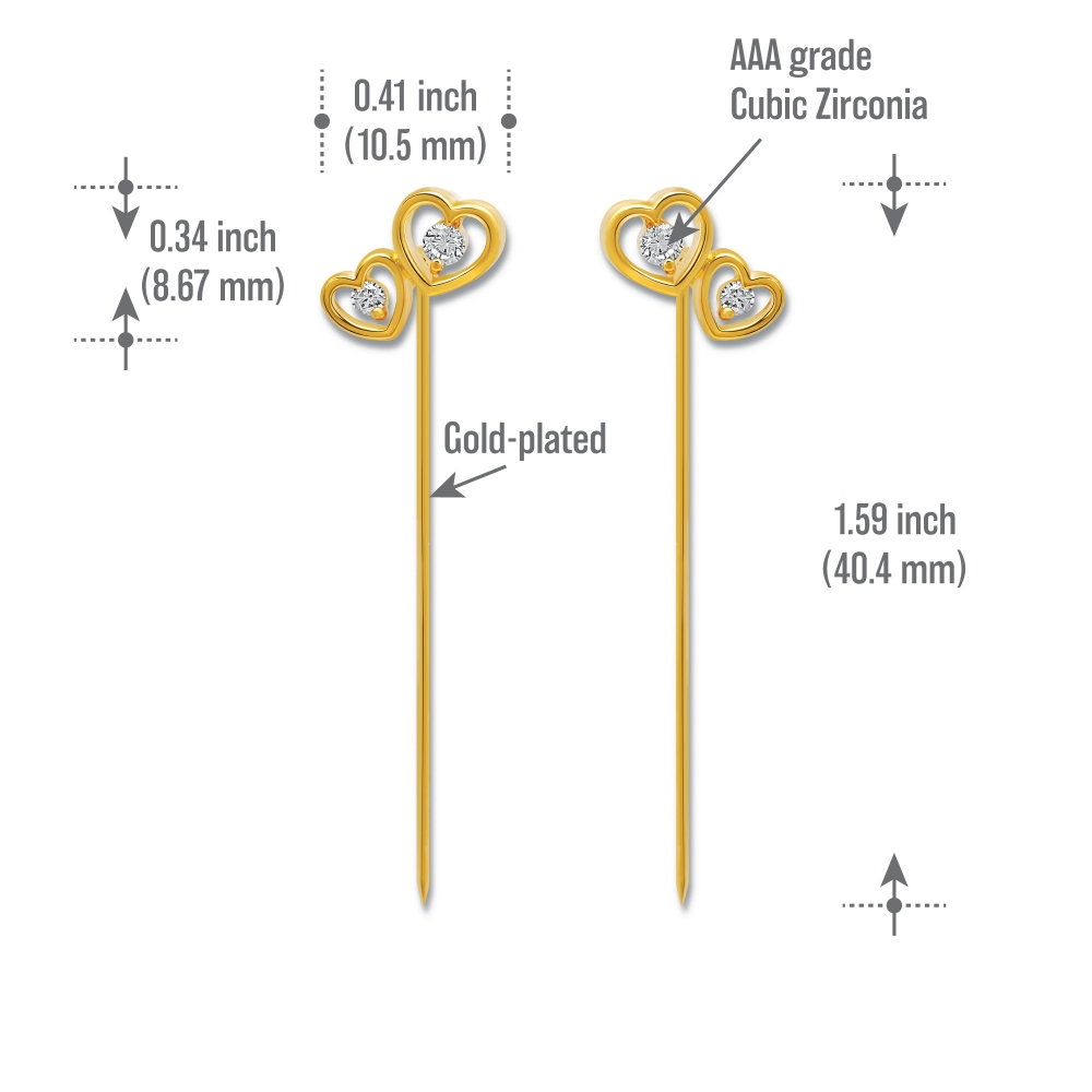 Featuring two connecting open heart designs with an inlaid cubic zirconia stones, these matching gold plated heart shaped scarf pins add a graceful accent to your scarf and hijab, keeping your slippery scarf in place without damaging the fabric.