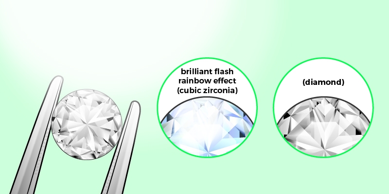 Another way to distinguish a cubic zirconia stone from a diamond is by placing the gemstone in direct sunlight. Diamonds are known for their brilliant reflection with a grey and white sparkle. Cubic zirconia, on the other hand, has a more rainbow-like reflection.