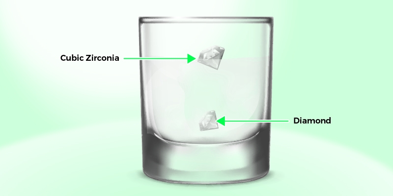 Fill ¾ of a glass with room-temperature water and drop your loose gemstones into the glass to see if they float or sink. If the gemstone floats on the water surface, it is likely a cubic zirconia. On the other hand, if the gemstone has sunk to the bottom of the glass, it is likely a diamond because diamonds are denser than water.