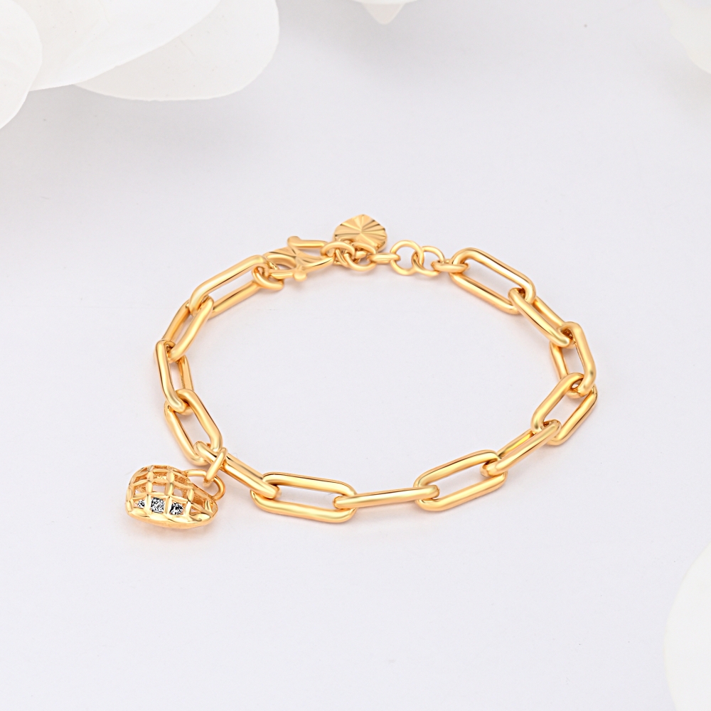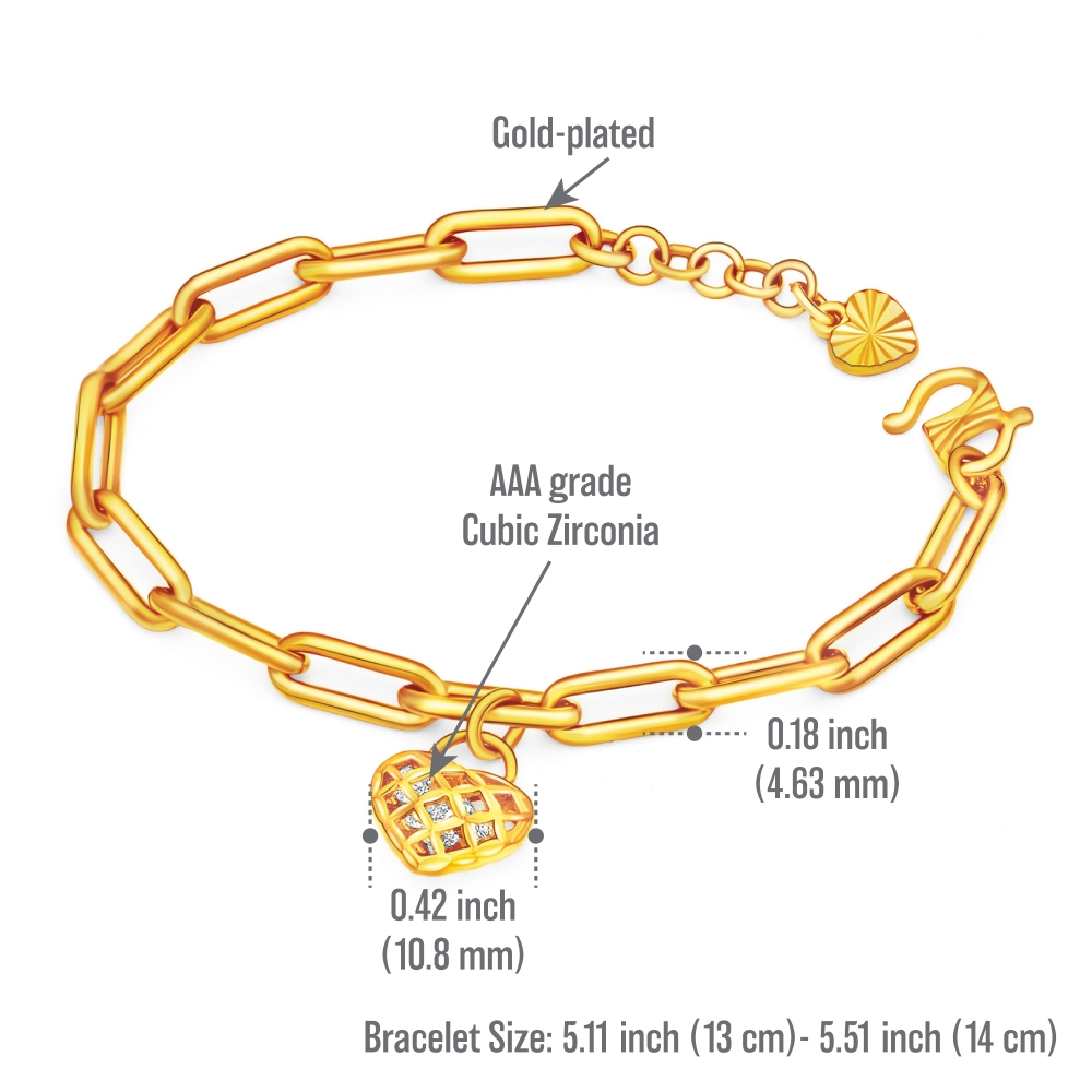 Thick Paperclip Bracelet Gold Plated with Heart Charm for Kids