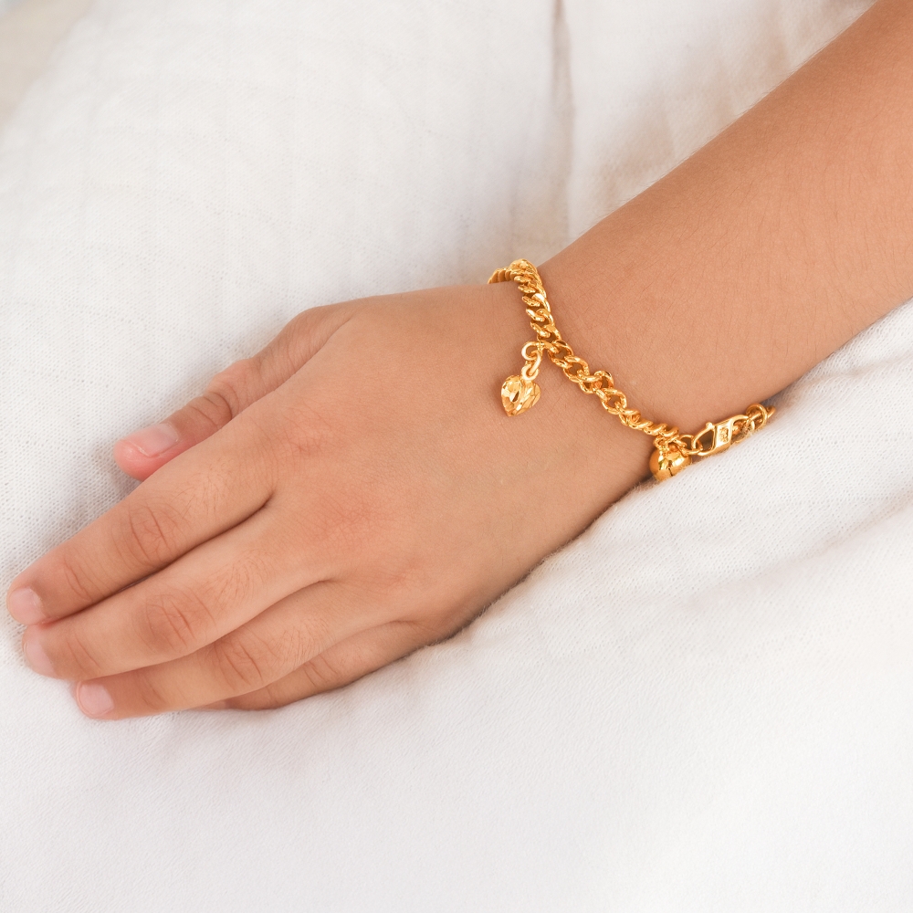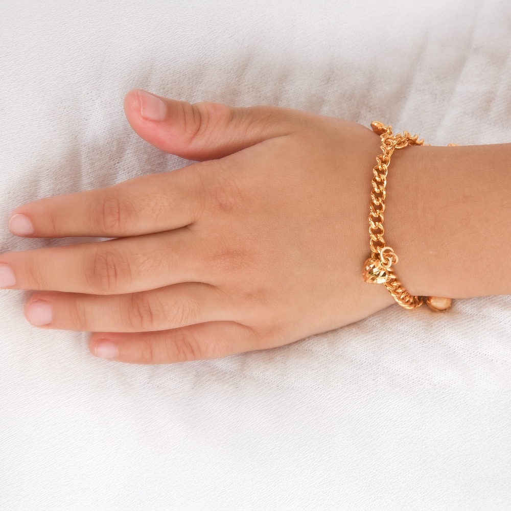 This timeless kid's gold plated heart bracelet embodies both elegance and stylish on little wrist.