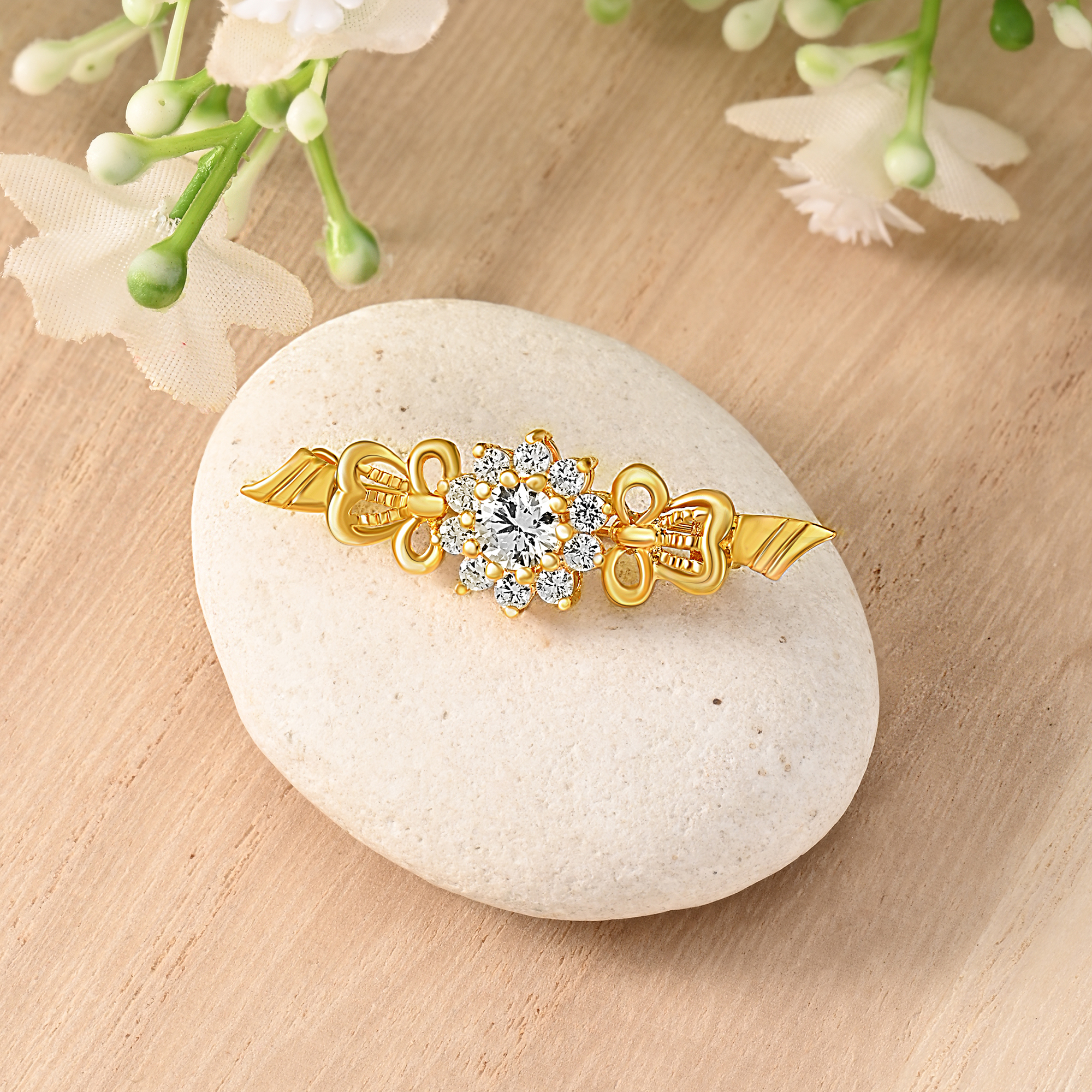This sophisticated and cute accessory captures the essence of natural beauty with its celestial-inspired design in a sunflower motif.