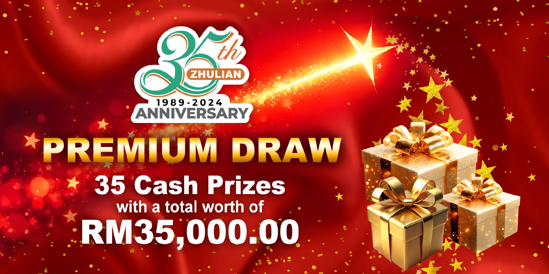Exciting News for all ZBOs! In celebration of 35 years of excellence, Zhulian is delighted to present the 'Premium Draw', promising an array of exciting cash prizes totalling RM35,000 with the grand cash prize set at an impressive RM10,000. This exclusive Premium Draw is only open to all valid and registered ZBOs as a token of appreciation for their dedication and support to Zhulian especially those who have journeyed with us through the years.