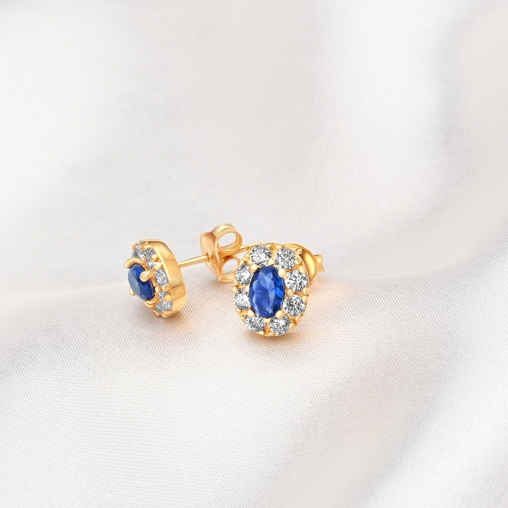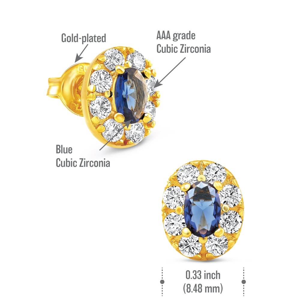 Featuring a vibrant oval blue synthetic Sapphire cubic zirconia at centre, each cubic zirconia gemstone radiates with a captivating brilliance, illuminating your look with a touch of sophistication.