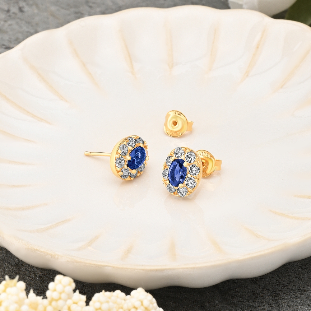 This regal-inspired stud earrings design with blue synthetic Sapphire is a stunning statement piece for daily style.