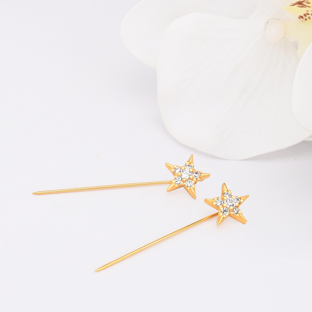 CZ Star Hijab Scarf Pins Gold Plated with CZ