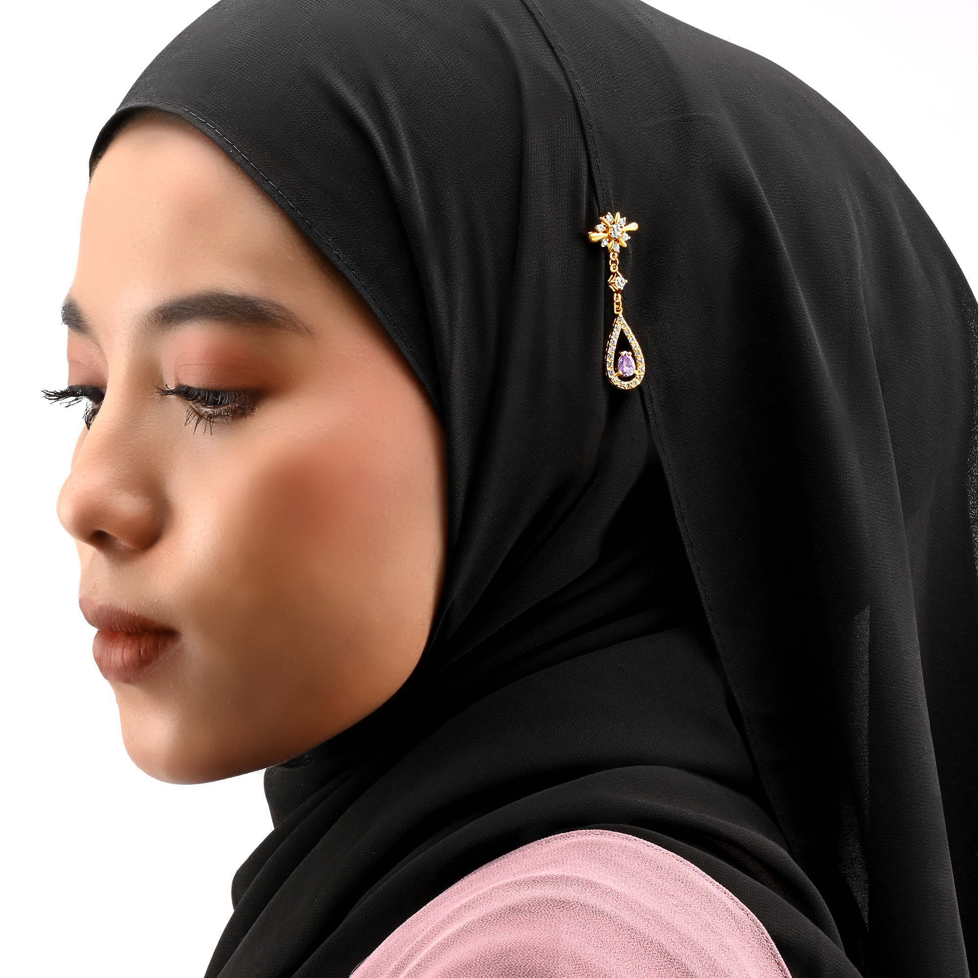 This dangling, teardrop brooch with a hint of purple is perfect to spruce up your appearance.
