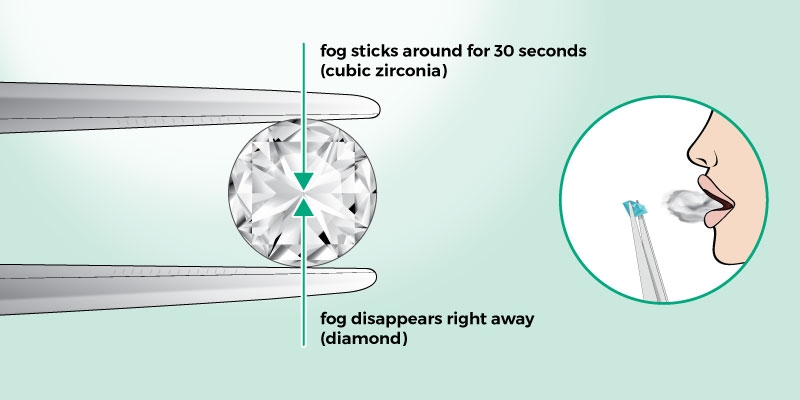 Breathe warm air onto the gemstone’s surface and see how long it takes for the fog to fade. If the fog disappears immediately, the gemstone is likely a diamond. If the fog lasts for over 30 seconds, it is likely cubic zirconia.