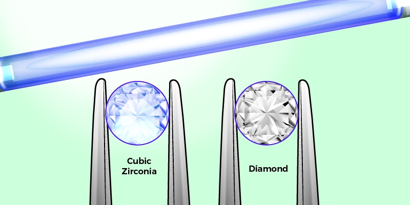 Did you know that diamonds have a blue fluorescent glow when exposed to ultraviolet (UV) light? Place the gemstone under a UV light. If the gemstone radiates a blue glow, it is a real diamond. If the gemstone doesn’t glow, it is a cubic zirconia.