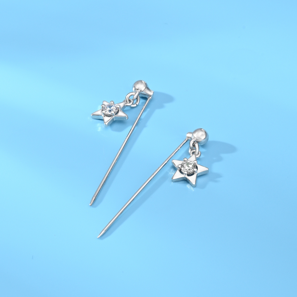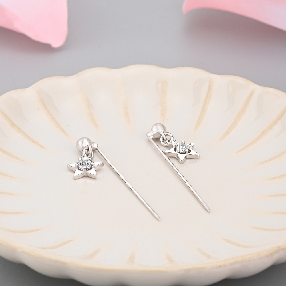 Mini Star Dangle Hijab Scarf Pins Rhodium Plated with CZ