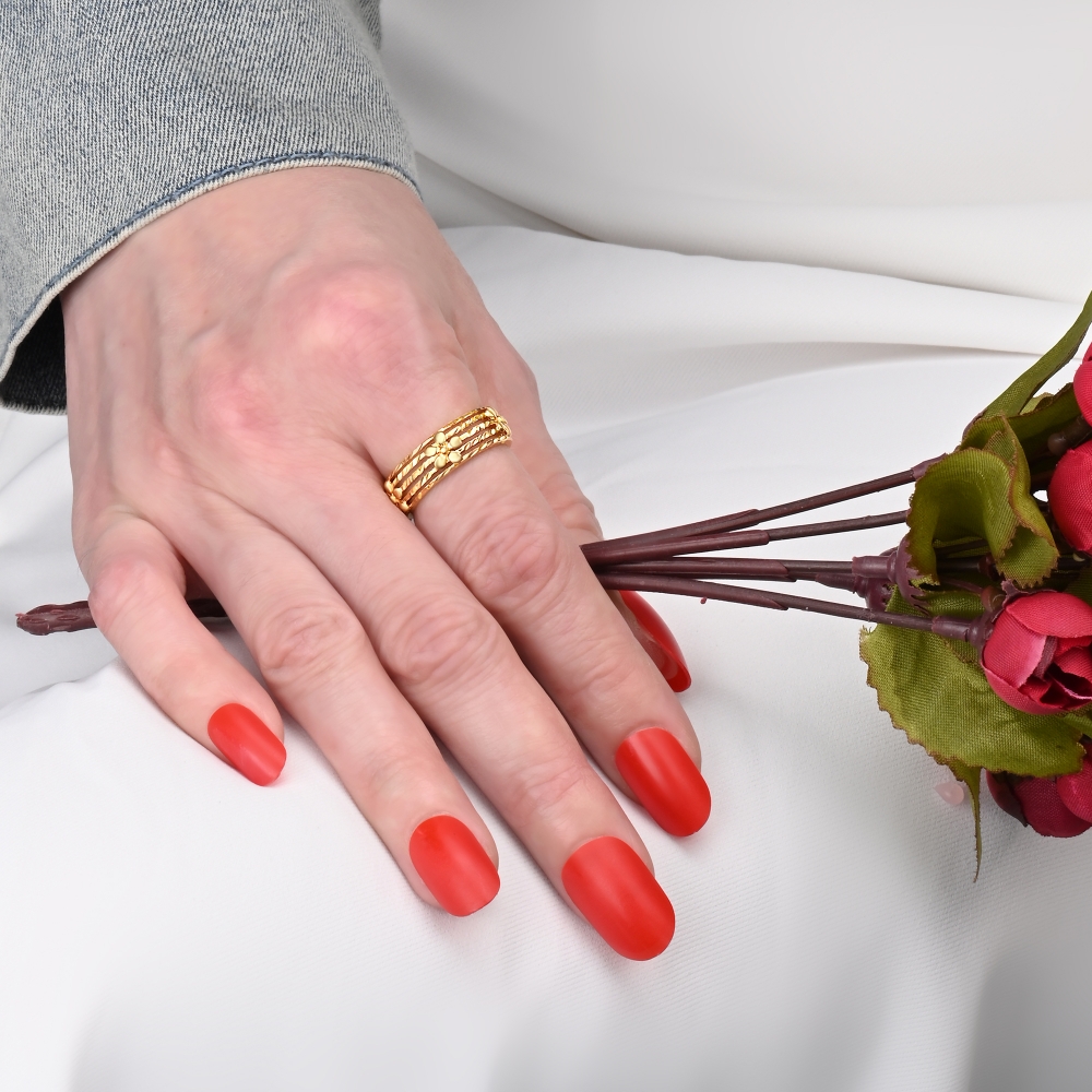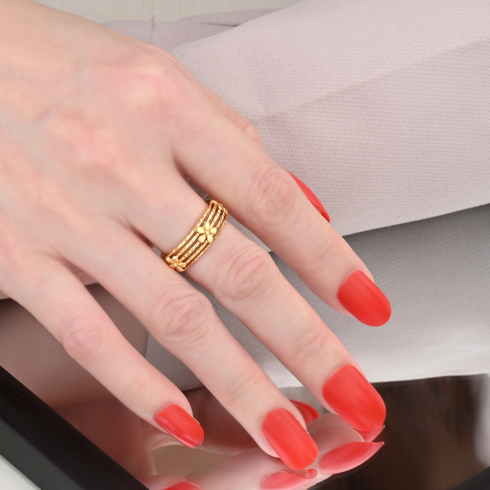 Adorn your finger with an artful 5-line rings beautified with dainty flowers for an elegant look.