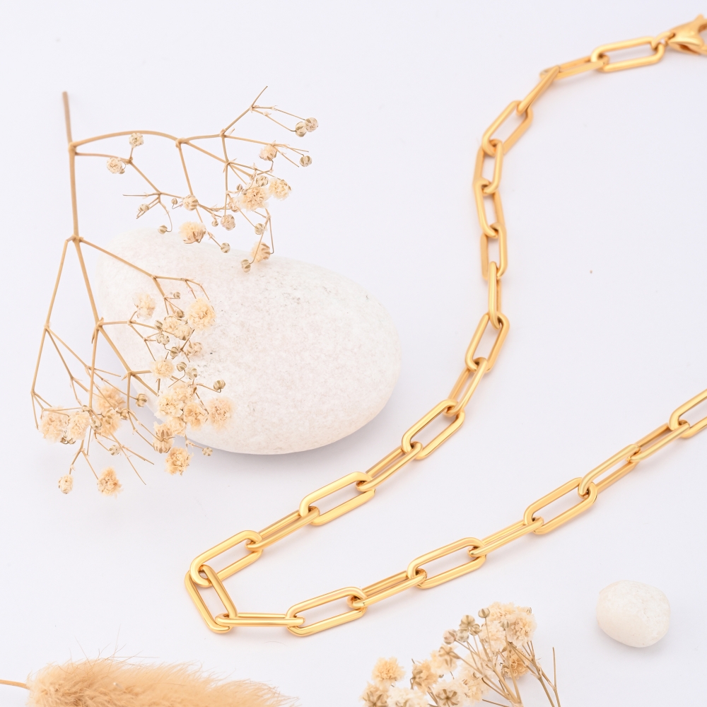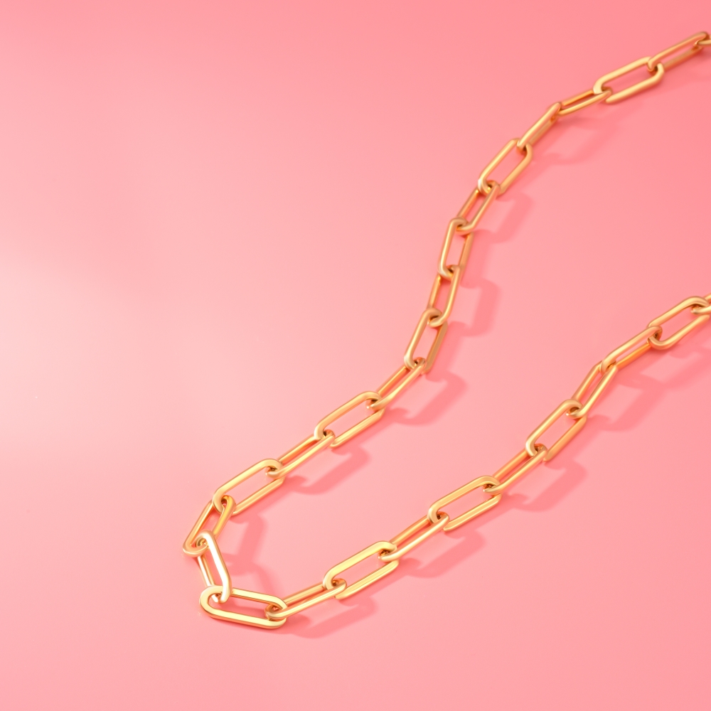 Featuring plain oval chain link design makes up a unique, long 'paper clips' chain, this gol dplated chain is perfect for layering or wearing alone, it offers versatility to match your personal style, allowing you to effortlessly create your own unique look.