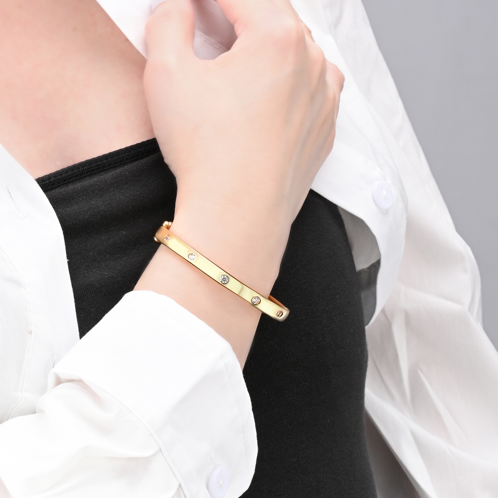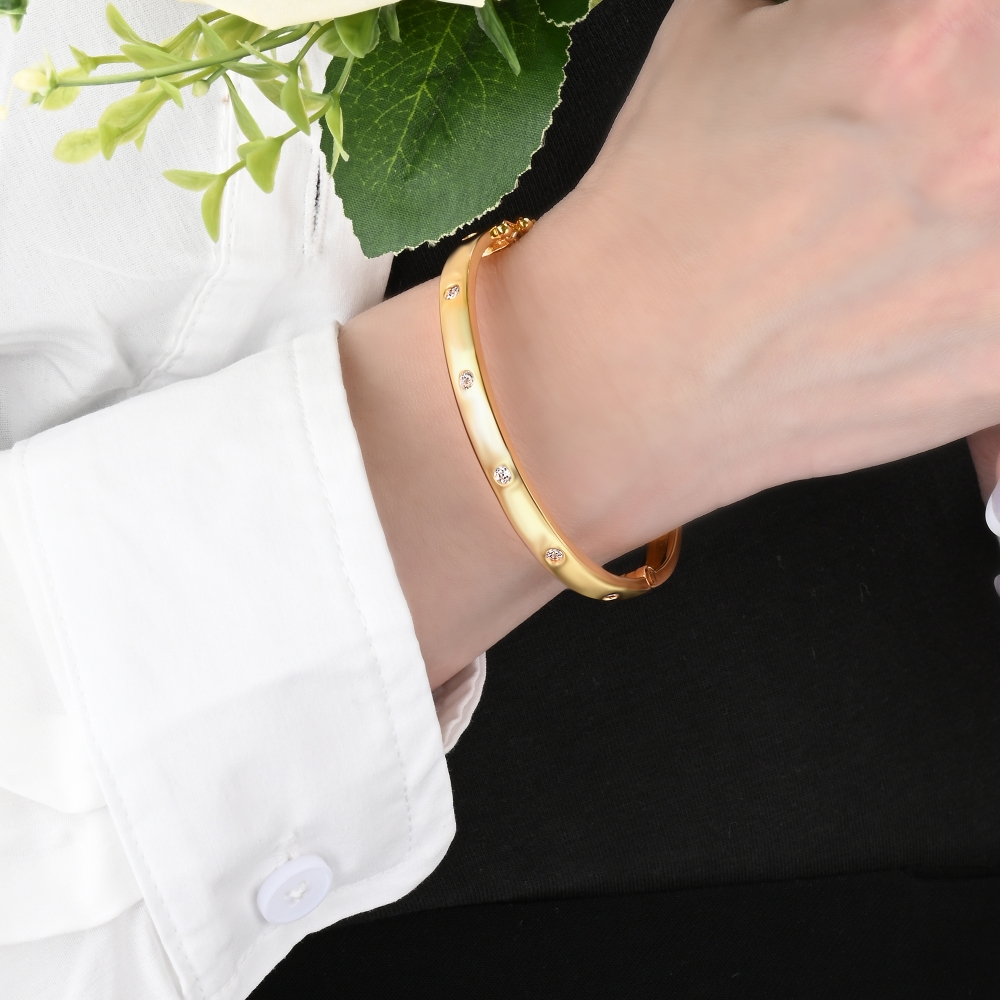 This modern bangle bracelet is a combination of minimalist and luxury with its embellished cubic zirconia.