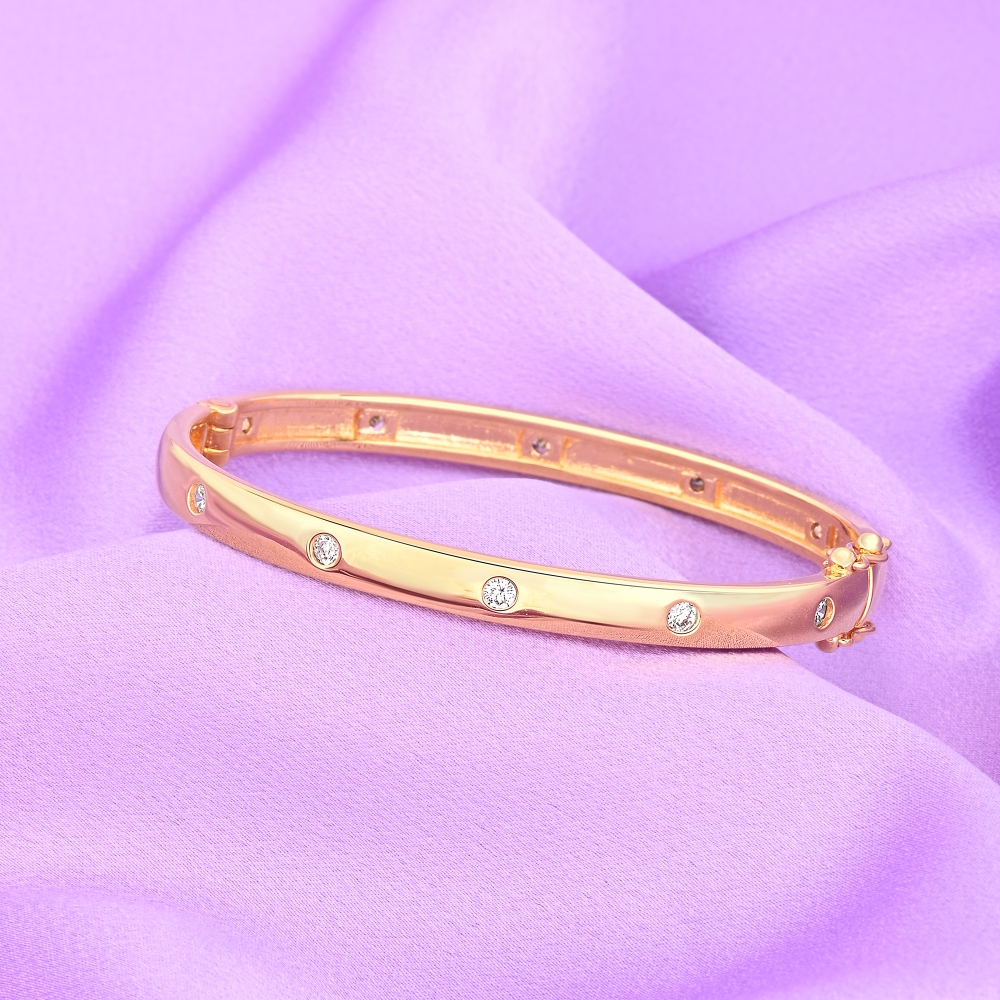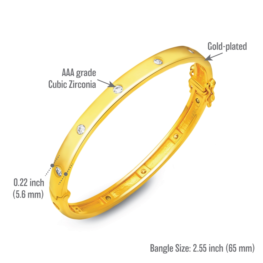 Designed with a modern minimalist style, this gold plated CZ bangle complements your style easily.