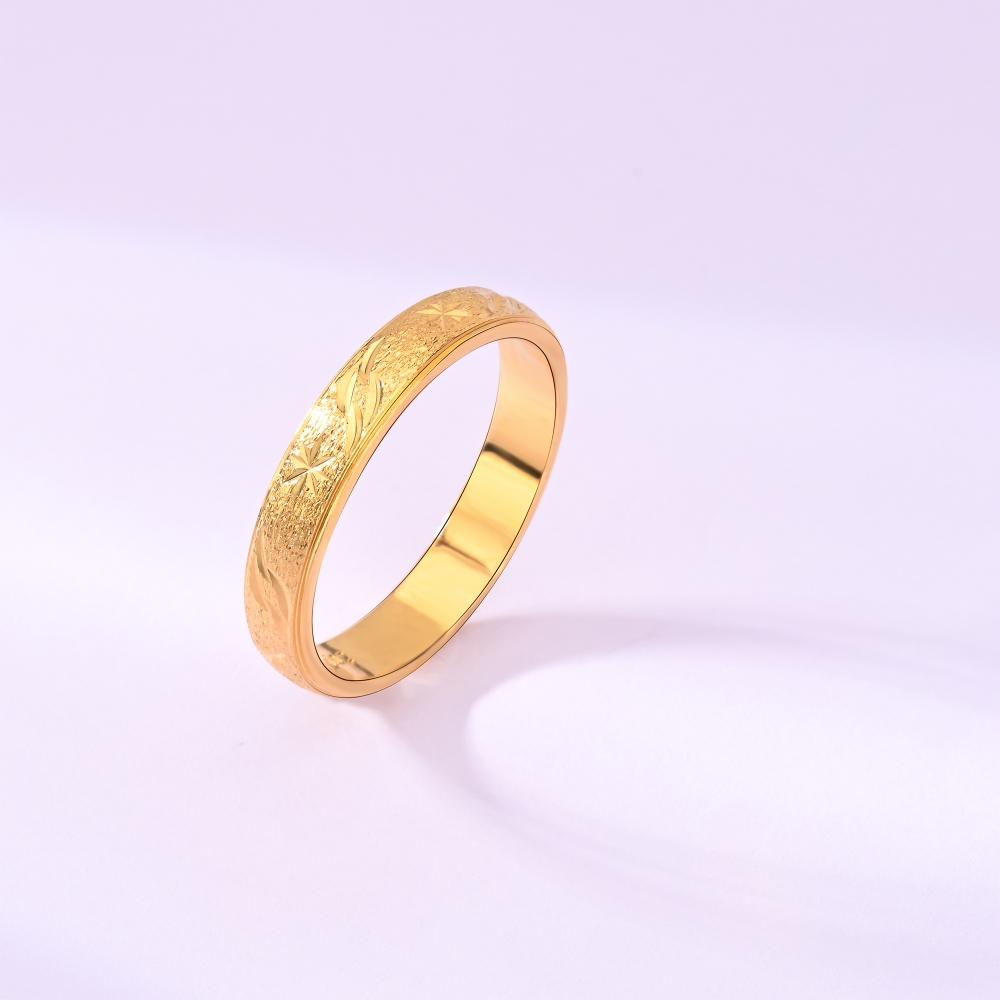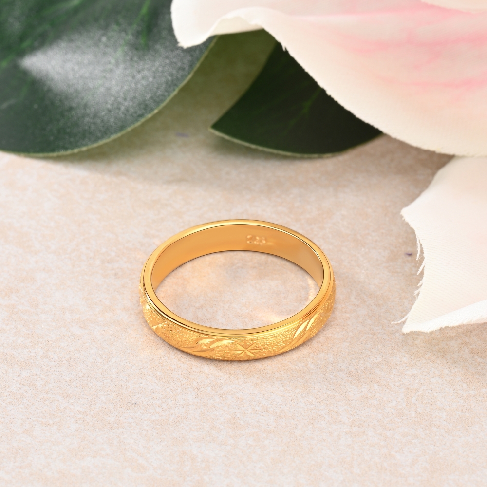 A classic ring with engraved star design that is timelessly simple yet fashionable for daily wear