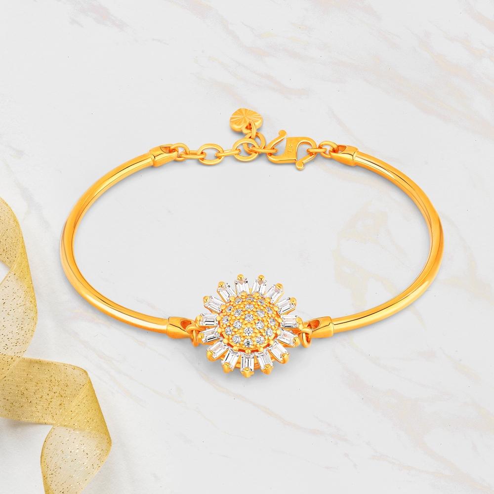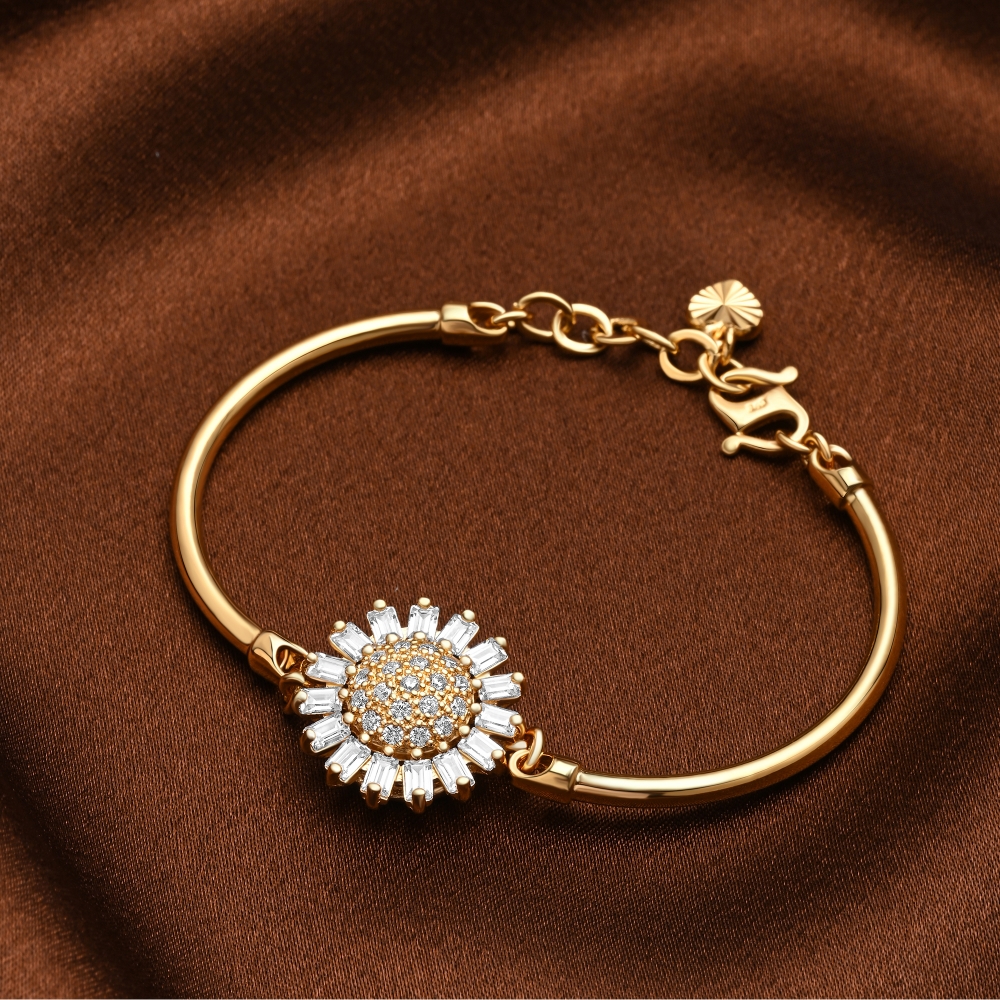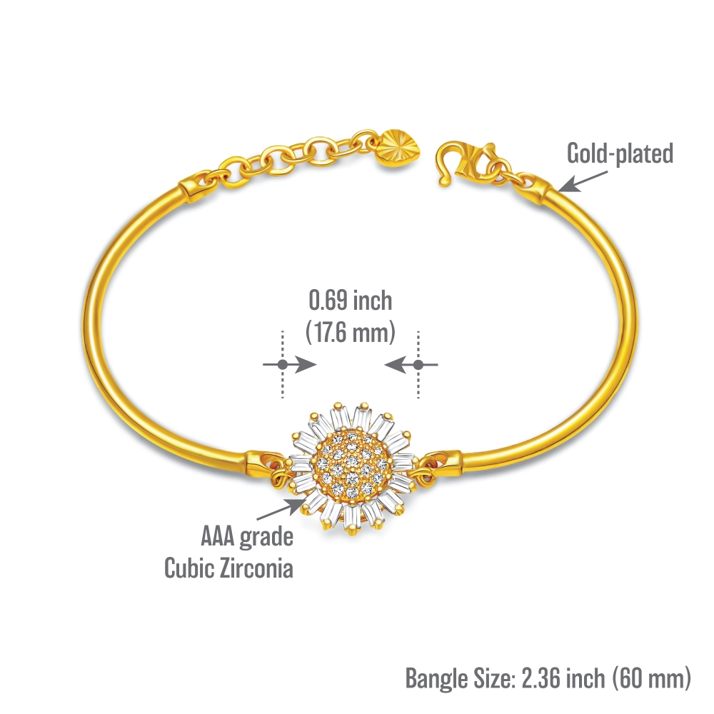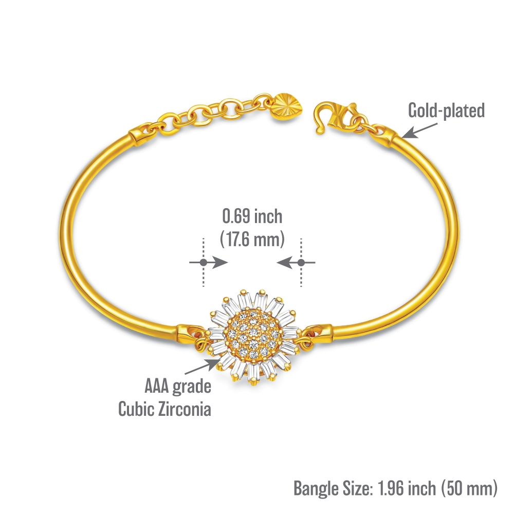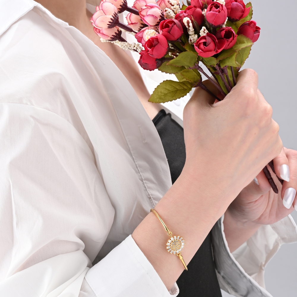 Radiating with the vibrant energy of a sunflower in full bloom, this sunshine bracelet features an intricate design that captures the essence of sunlight, emanating elegance, love and warmth.